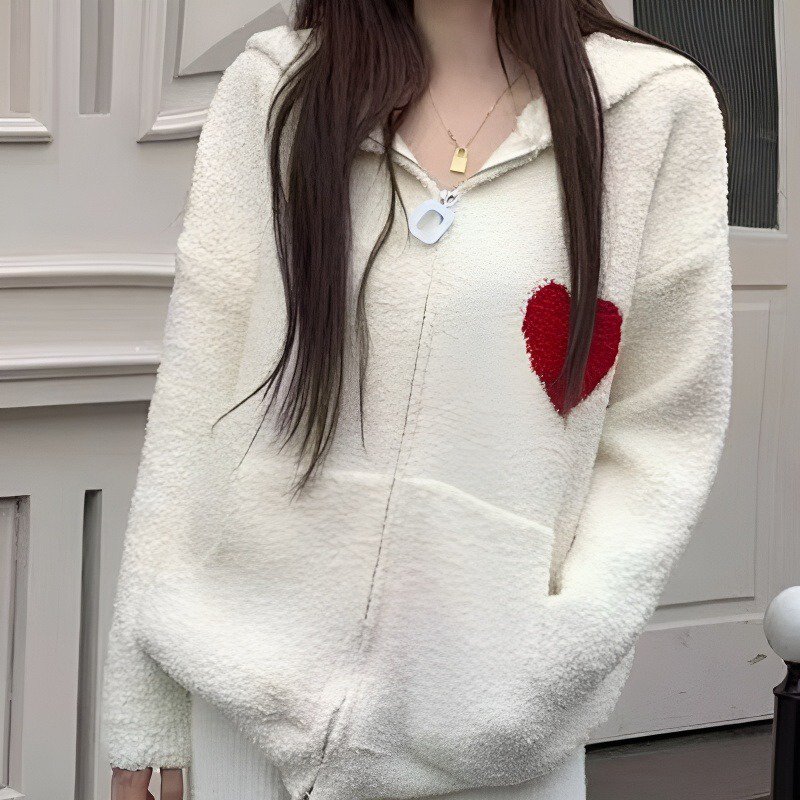 ハート刺繍フード付きシープボアジャケット